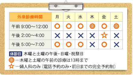 金曜14:00〜16:00は、婦人科のみ・完全予約制(電話予約のみ・ネット予約不可)です。
